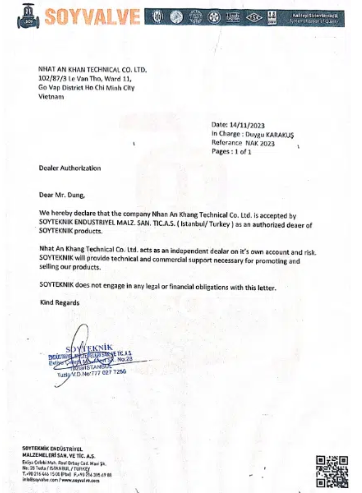 Công ty TNHH Kỹ Thuật Nhật An Khang là đơn vị chuyên nhập khẩu và phân phối chính hãng van công nghiệp cùng thiết bị đo lường, điều khiển chất lượng cao tại Việt Nam. Là đối tác của nhiều thương hiệu uy tín toàn cầu như YNV, SOY, HELS, SAMWOO, WONIL, ARMATUREN, WIKA, ITAVALVO, TAVT…, Chúng tôi mang đến các giải pháp kỹ thuật hiệu quả, đáp ứng yêu cầu của nền công nghiệp hiện đại. Với giá trị cốt lõi “Chất lượng – Uy tín – Hài lòng”, Nhật An Khang cam kết cung cấp sản phẩm chính hãng, giá cả hợp lý cùng dịch vụ hỗ trợ kỹ thuật và bảo hành nhanh chóng, tận tâm, hướng đến sự an tâm và hài lòng cao nhất cho khách hàng.